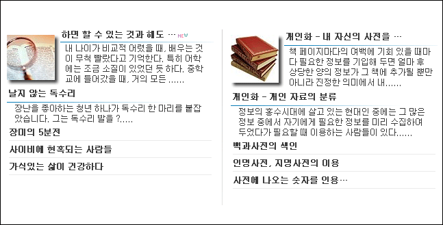 ※. 주의: 아래의 30번 "웹진형 최근 글 (본문 글 추출형)"의 업그레이드 버전입니다. 만약 전 버전을 받았다면, G4/extend 에서 my.lib.php을 제거해 주세요. 아니면, 동일 함수를 2번 선언하게 되요.