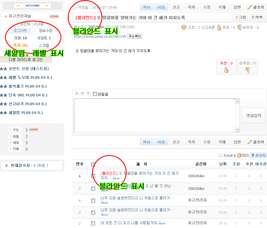 . 관리자가 블라인드 된 게시글 볼때 [블라인드] 표시해서 알려줌