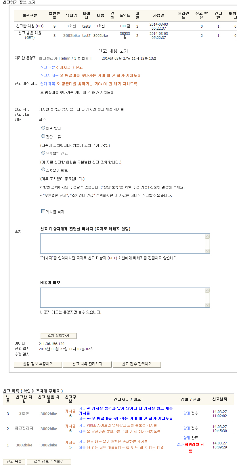 . 회원이 신고할때 아래에 메모하여 관리자에게 의사를 전달할수 있음