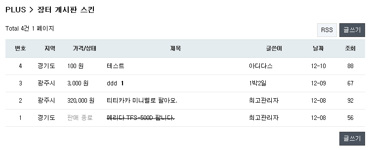 새로운 "중고장터용 게시판 스킨"을 만들었습니다.