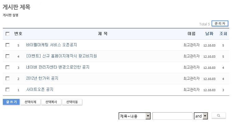 멀티 버튼 베이직 게시판