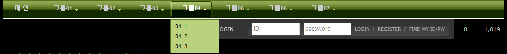 메인메뉴에 롤오버시 하단으로 부드럽게 서브메뉴가 내려오는 형식입니다.