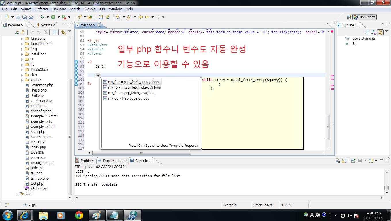 에디터플러스도 좋은 도구이긴 한데 자동 완성기능이 없어서 불편했는데 이클립스에는 자동 완성 기능이 있군요...