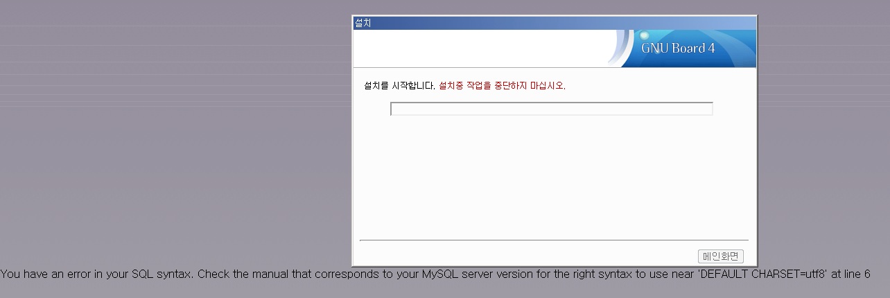 당신은 당신의 SQL 구문에 오류가 있습니다. 6 행의 'DEFAULT CHARSET은 = UTF8'근처에 사용할 올바른 구문 MySQL 서버 버전에 해당하는 설명서를 확인