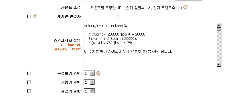 관리자 게시판 수정폼에서 스킨제작자 설명글 보여주기
