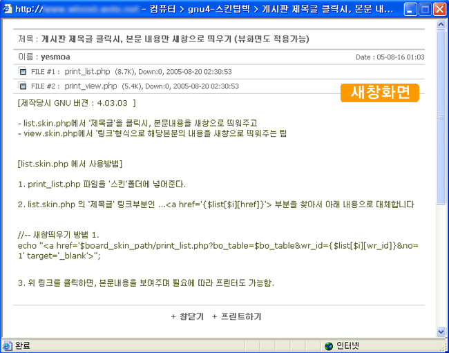 print_list.php (게시판목록에서 제목글 클릭시, 바로 새창띄우기)