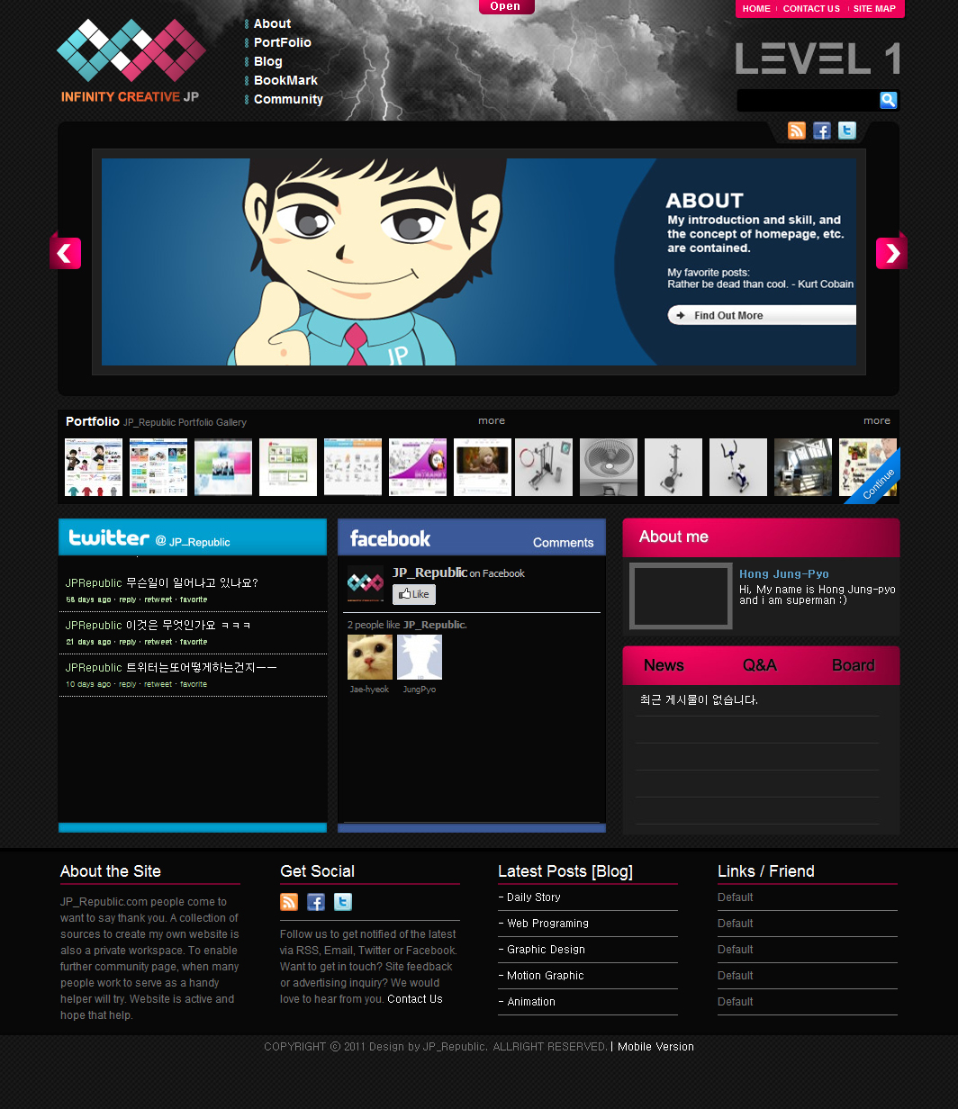 와 너무예쁘네요 개인홈페이지 레이아웃구성이 잘될거같습니다.