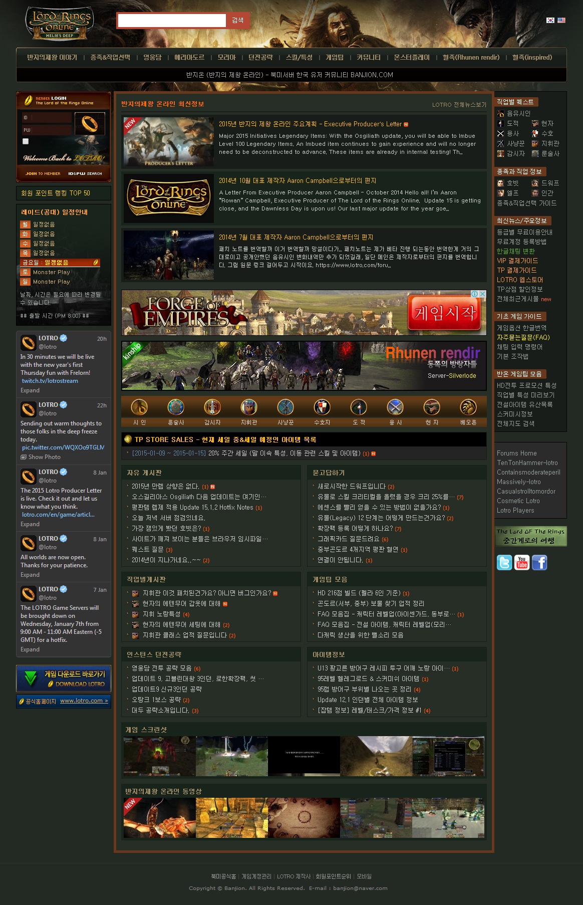 반지의제왕 온라인 게임 커뮤니티 사이트입니다.