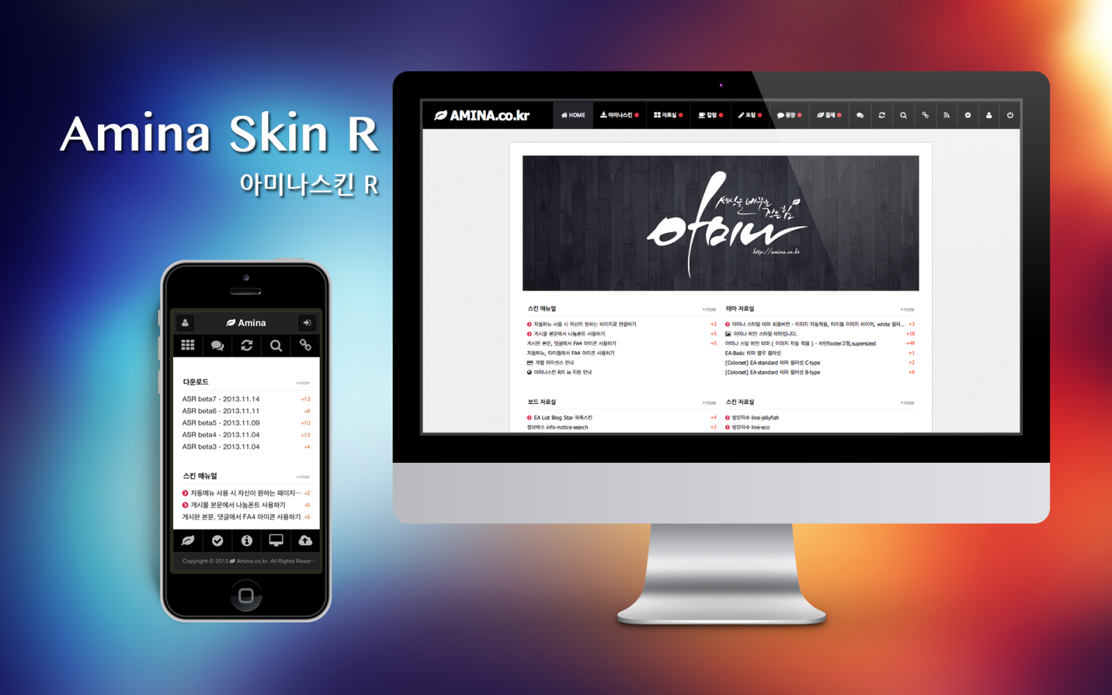 2. 추가 테마 및 스킨은 http://amina.co.kr 의 자료실을 이용해 주세요.