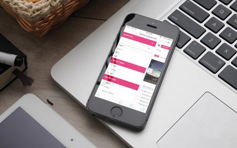 설치완료 후 모바일버전 화면 : http://theme.eyoom.net/?theme=pc_basic&device=mobile