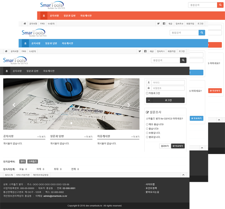 스마툴즈 빌더는? 간단한 설치만으로도 부트스트랩 기반의 반응형 홈페이지를 손쉽게 구축하고 운영할 수 있도록 도와드리는 반응형 웹사이트 구축 솔루션입니다.