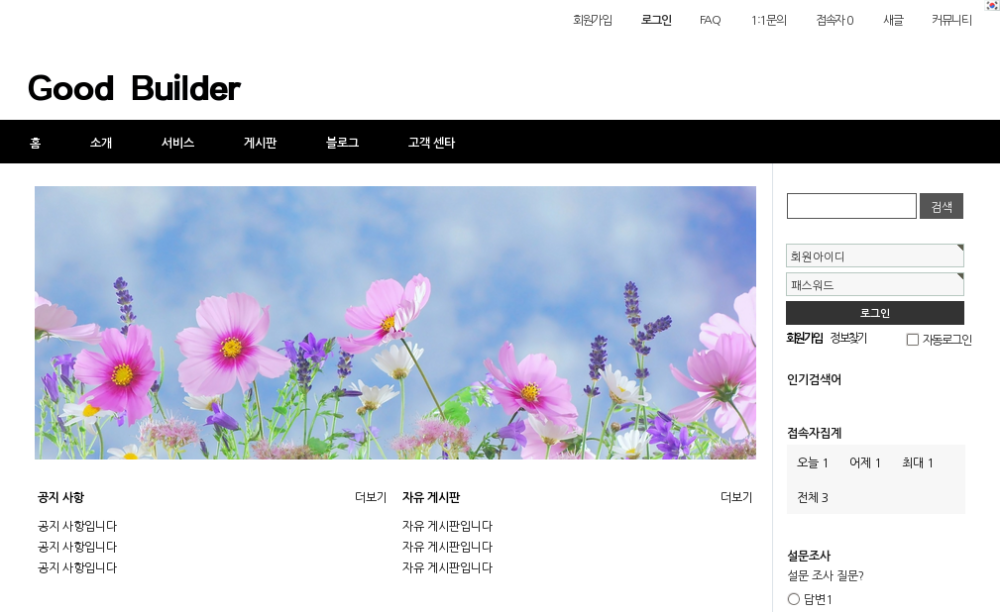 (데모 페이지에서는 비배포본 일부 기능 지원으로 게시판 및 쇼핑몰 검색 가능)