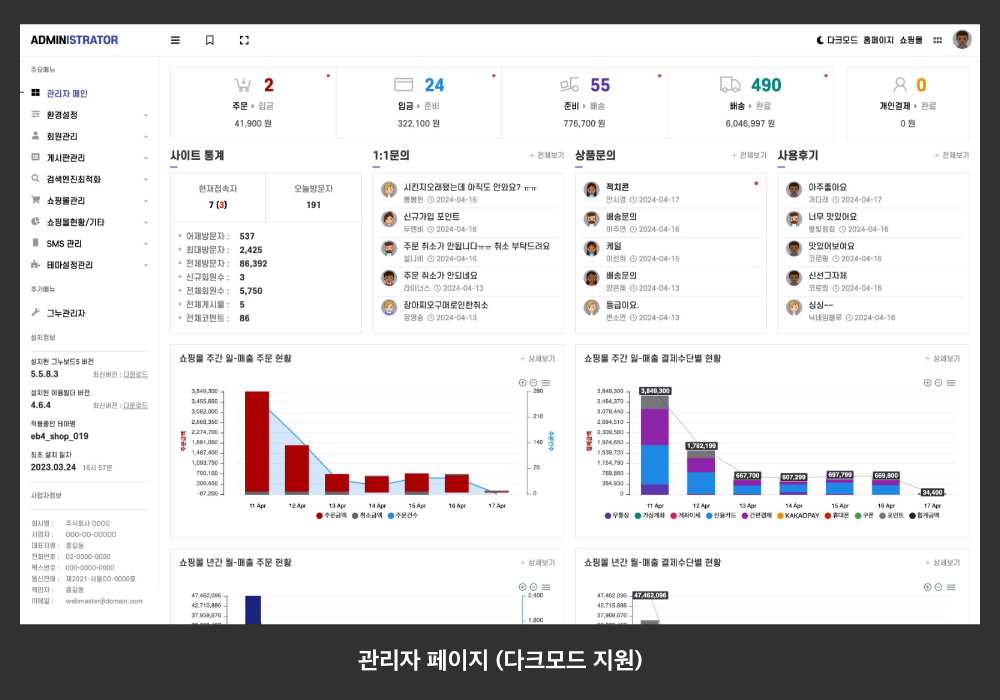 10. 다중관리자 설정 기능을 제공합니다.