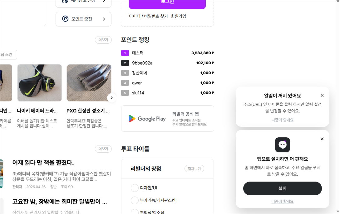 비회원 열람을 할 수 없는 게시판은 제외하였습니다.