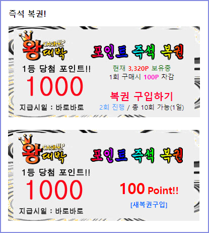 1. config.php 에서 일일 횟수 제한, 구매 포인트 등의 설정을 적당히 수정합니다.