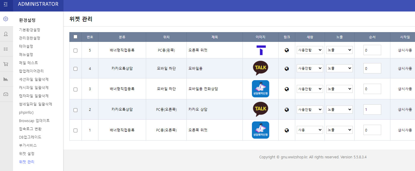 관리자 https://gnu.wwizshop.kr/adm/widget_list.php