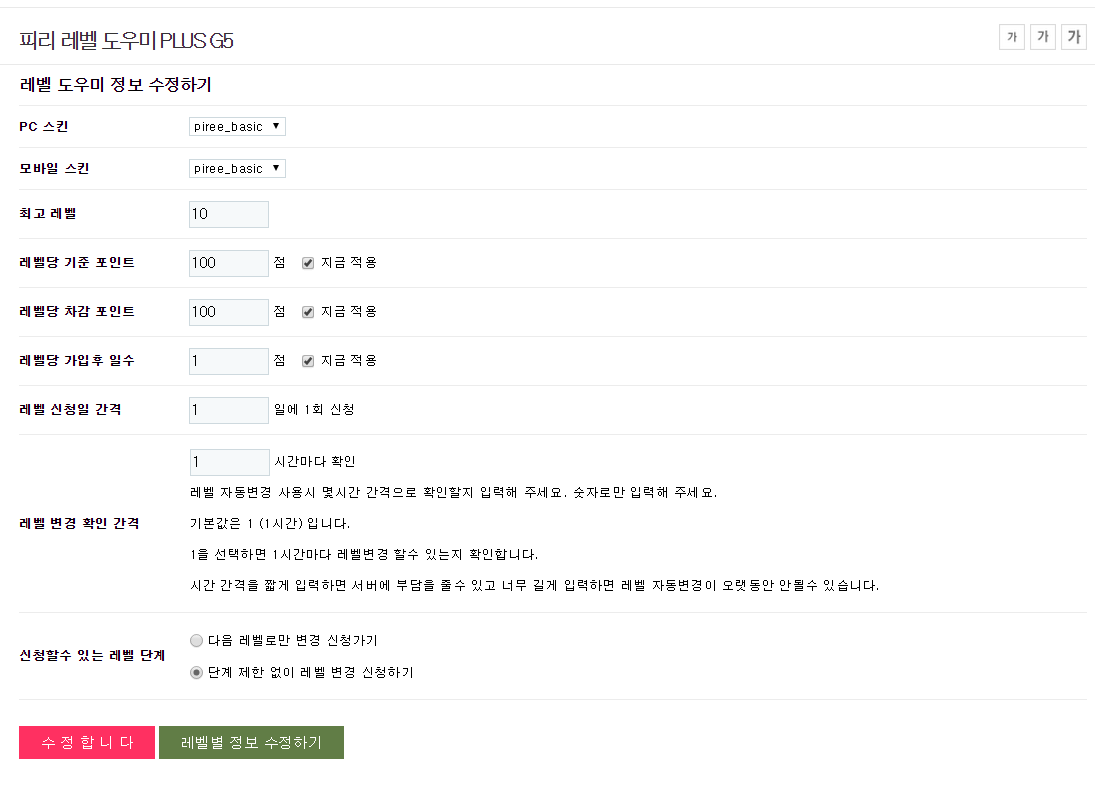 그누보드5에 사용할수 있는 레벨 변경 기능 프로그램입니다.