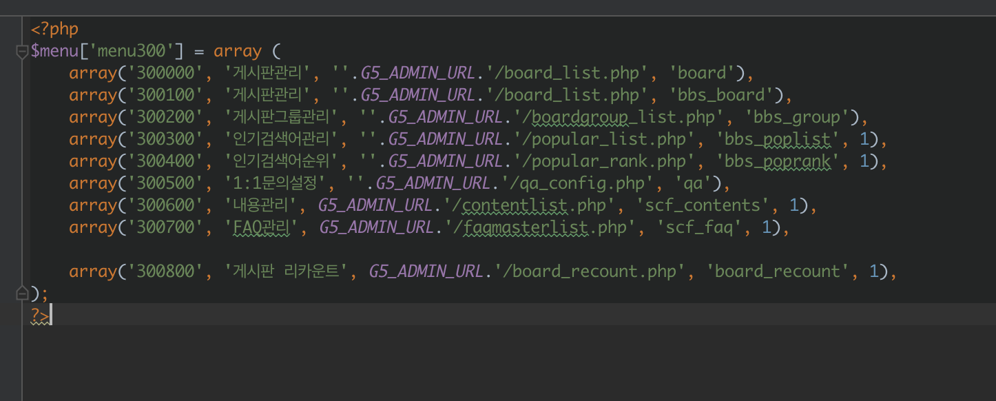 array('300800', '게시판 리카운트', G5_ADMIN_URL.'/board_recount.php', 'board_recount', 1),