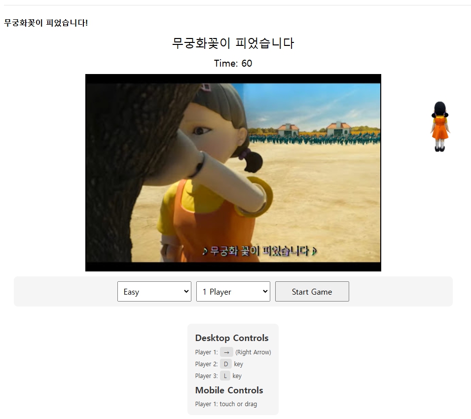 오징어게임에 나왔던 무궁화꽃이 피었습니다 게임을 그누보드용으로 만들어봤습니다.
