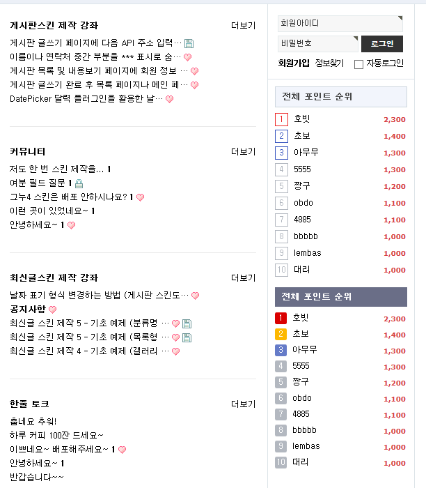예를 들어 그누5 에서 우측 로그인 밑에 넣는다고 했을 때 이렇게 넣어주면 될 겁니다.