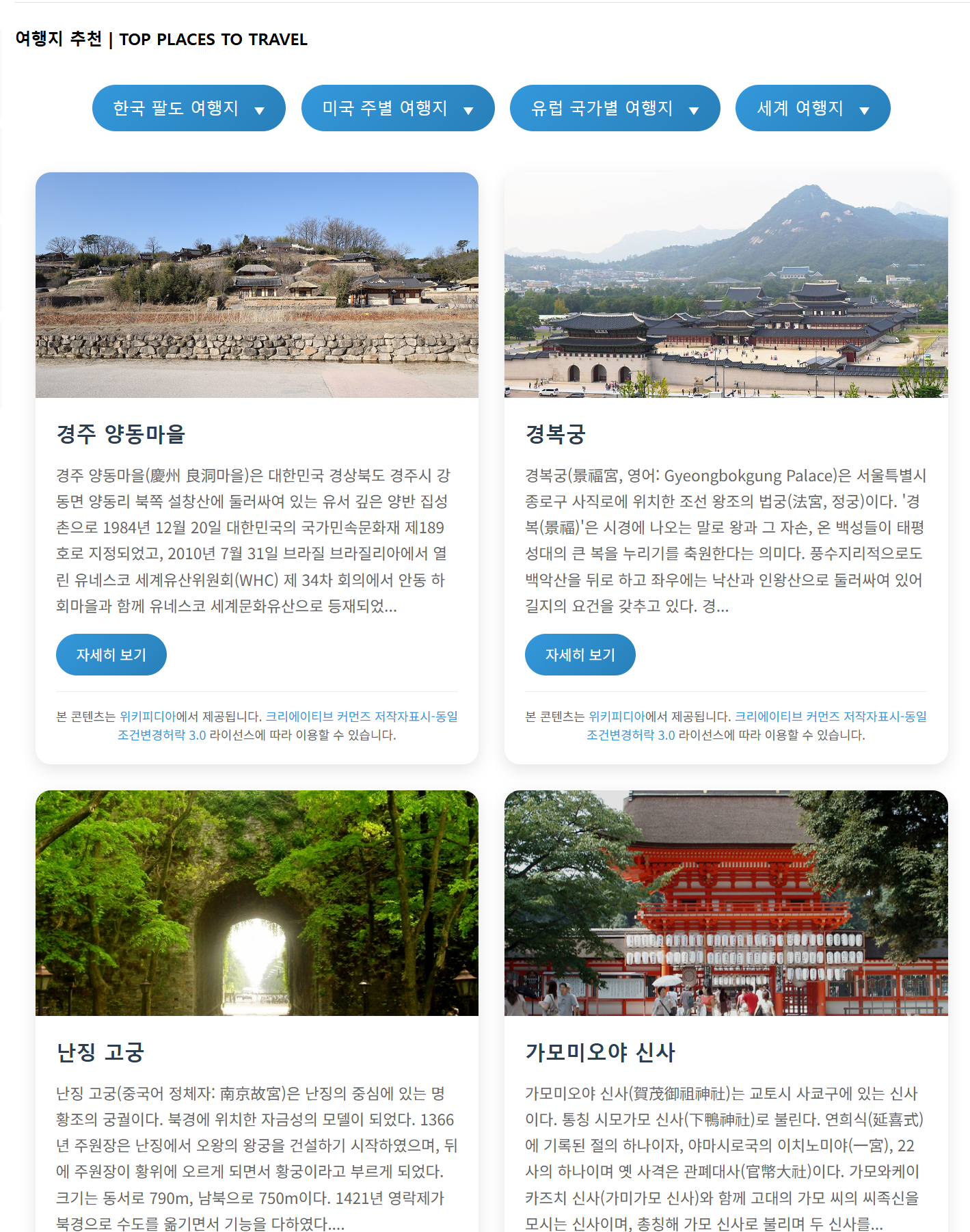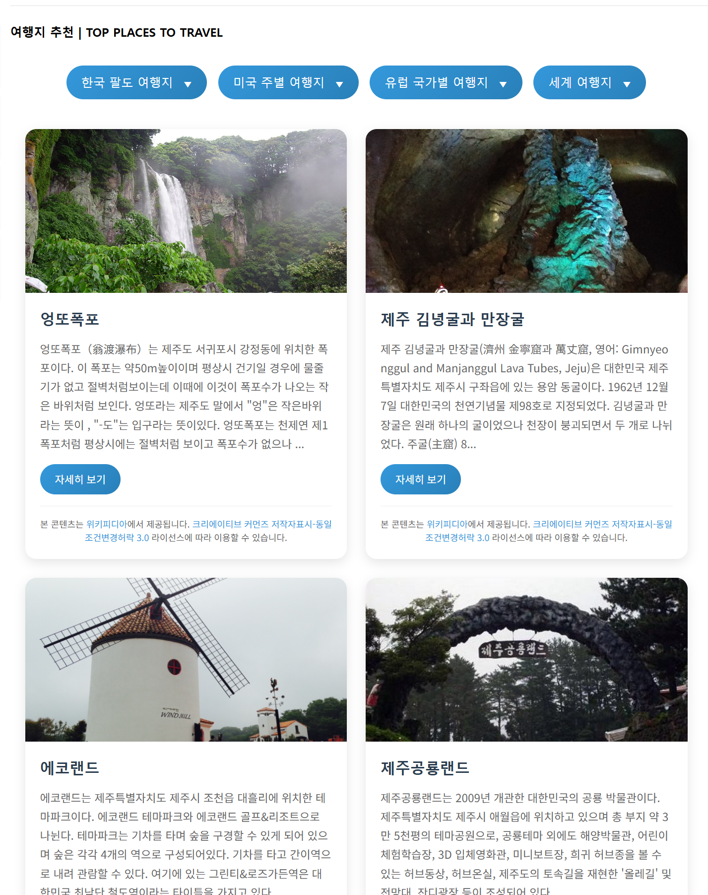 여행지 추천 ( 그누보드용) ( 무료 위키 api )