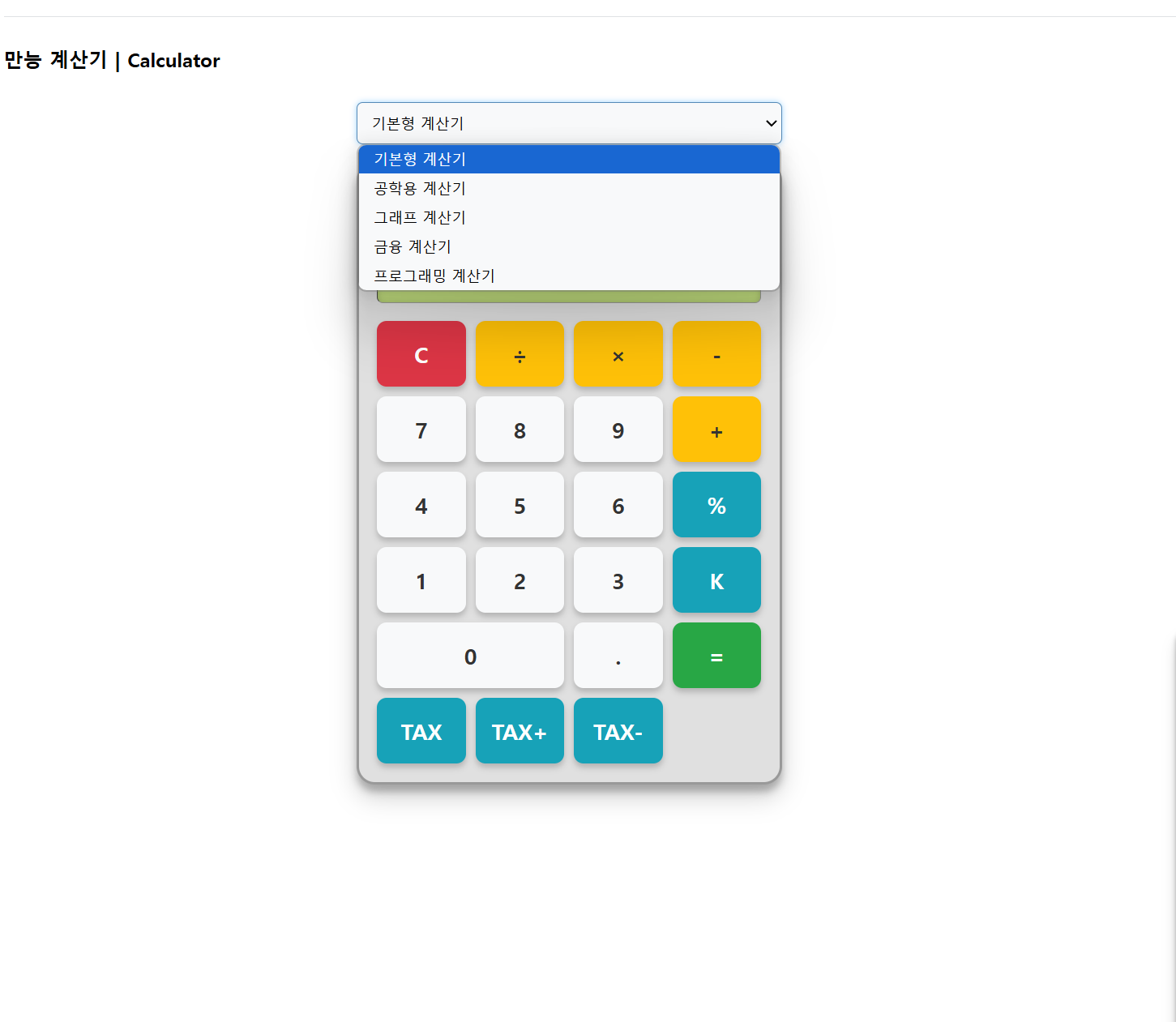 기본형, 공학용, 그래프, 금융형, 프로그램용 계산기를 한꺼번에 다 구현했어요..