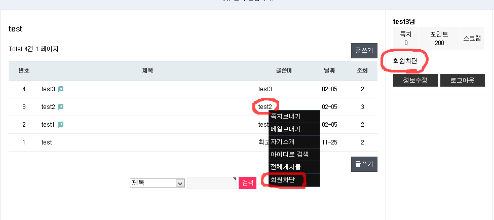 요즘 이슈가 되고 있는 회원차단 기능 입니다.