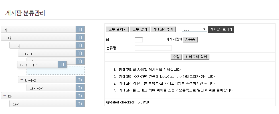 게시판 미선택시 카테고리 추가 버튼 누르고 나중에 게시판 선택하면 nestable 않먹히는 에러납니다.