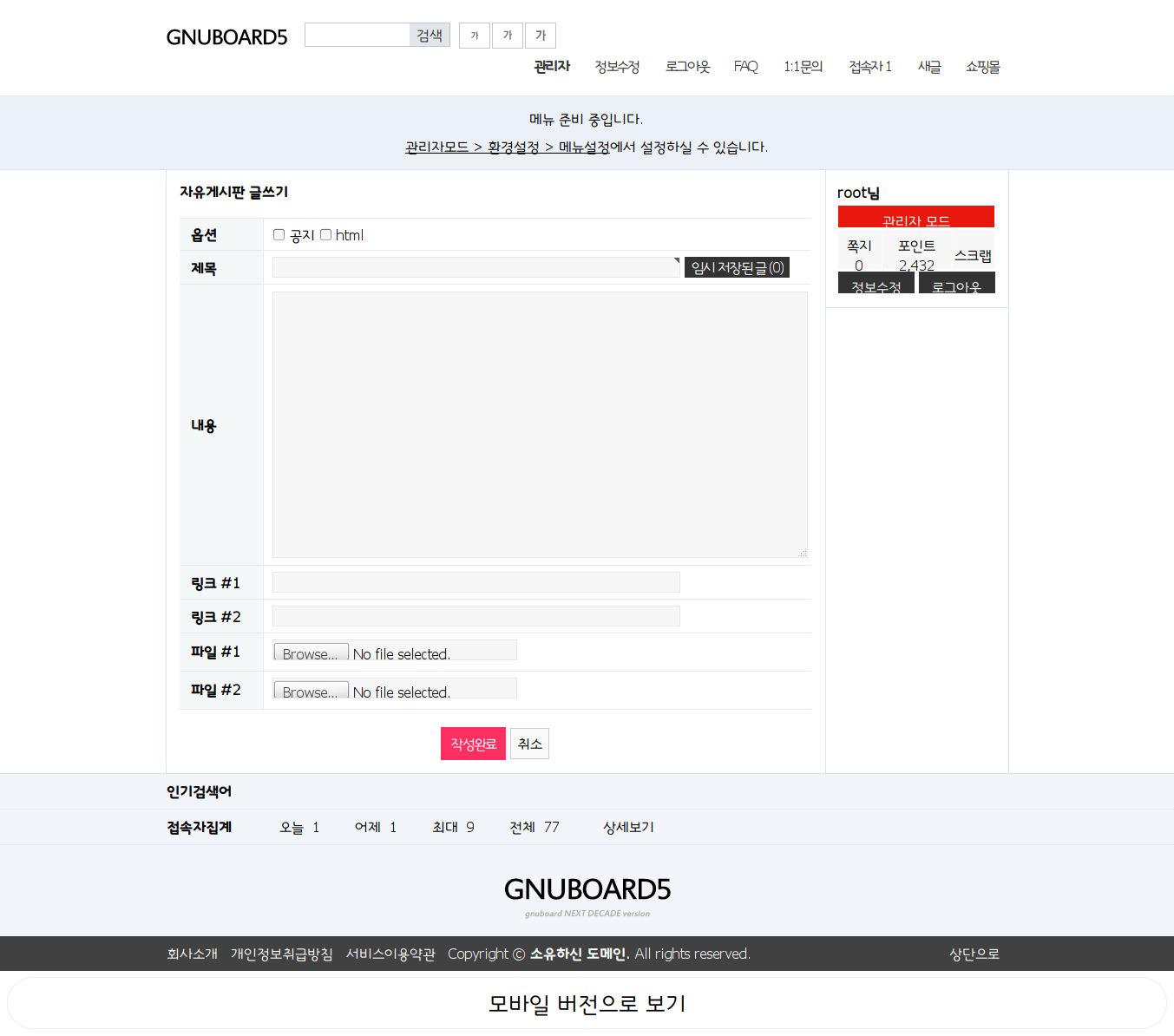 1. 그누보드 설치된 디렉토리에서 압축 풀면 끝.