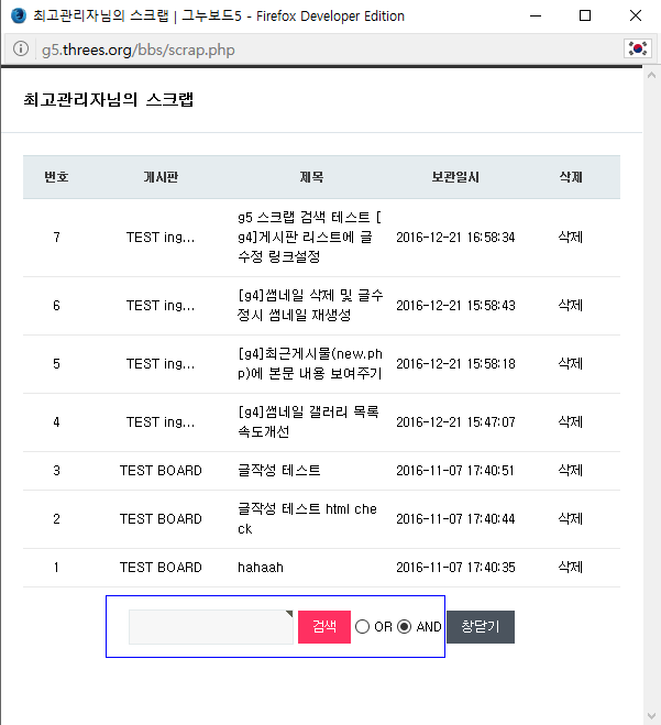 1. 스크랩 테이블에 wr_subject 필드 생성, 기존 데이타 update, 검색 sql 수정