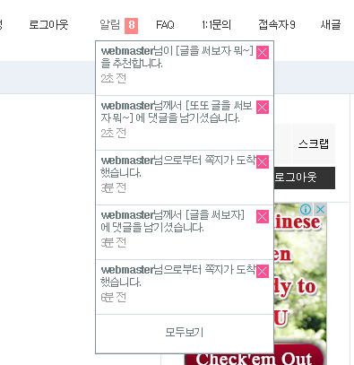 [SRD] 그누보드 알림기능
