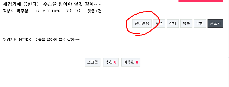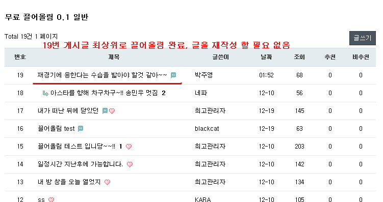 # 끌어올림 장점 장터 판매글이나 모임 공지등 내용은 같지만 페이지 뒤로 밀린 경우 주기적으로 끌어올림 하여 다른이에게 잘 보이게 해줌
