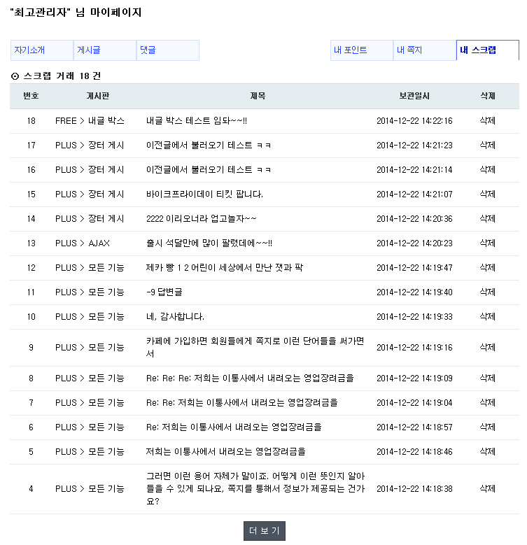 . 내 스크랩 : 나의 스크랩 내역, 내가 게시글을 보고 스크랩 한 목록들이 나온다.