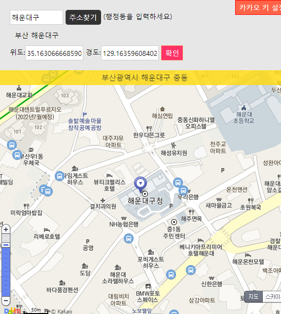 관리자로 로그인 했을 때만 우측상당 카카오 키 설정 버튼이 나옵니다.