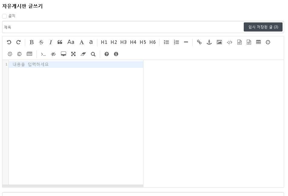 http://vorfeed.dothome.co.kr/g54/bbs/board.php?bo_table=free&wr_id=2 (337) http://vorfeed.dothome.co.kr/g54/bbs/write.php?bo_table=free (316)저번에 올렸던 마크다운 에디터 업그레이드 버전입니다.