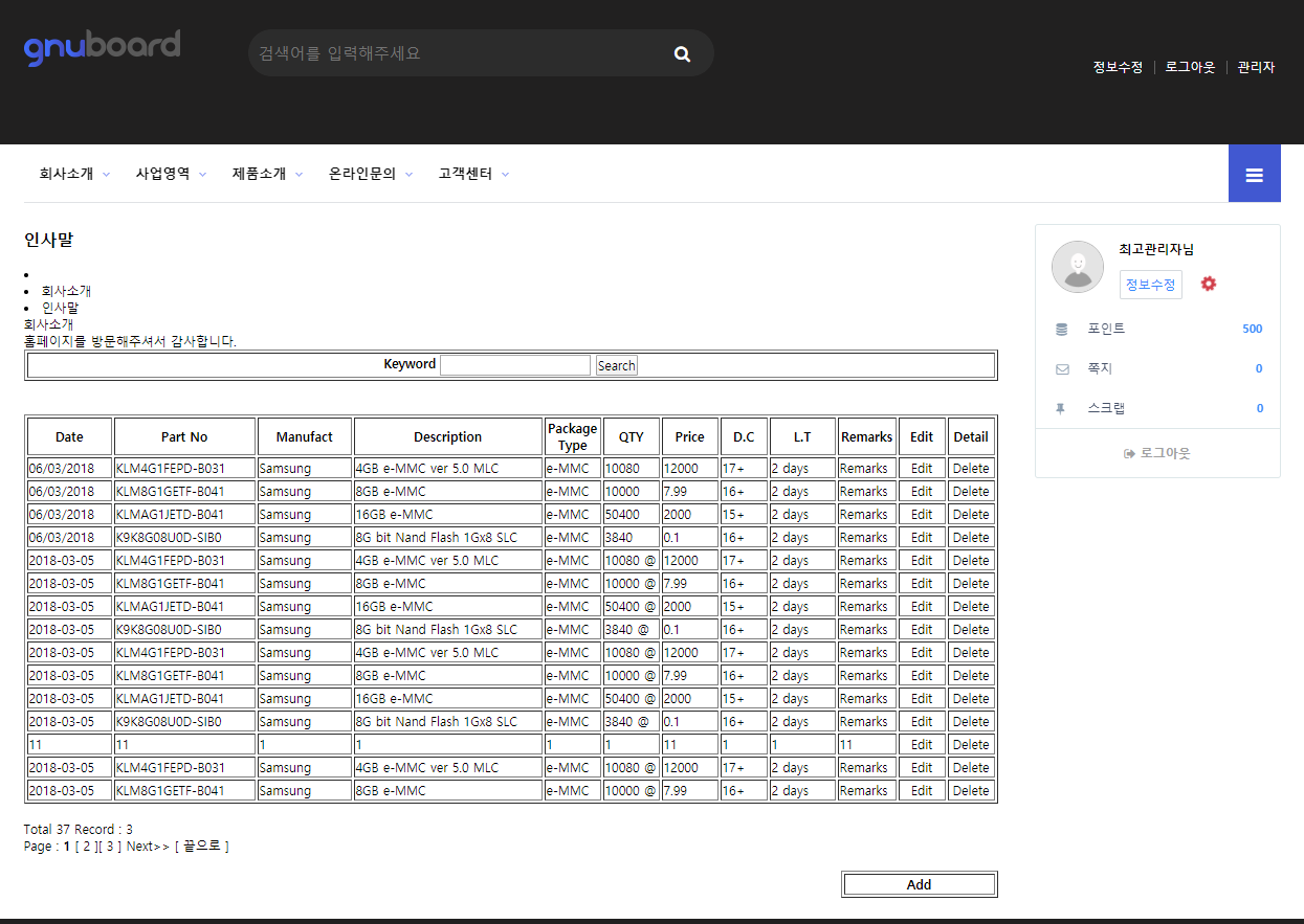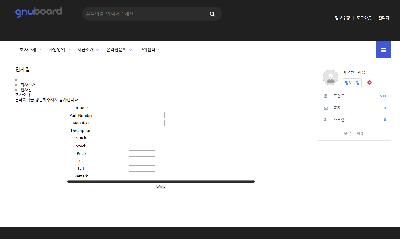 또한 그누보드와 커스트마징 DB를 사용하는 예제로 기능확장에 대한 도움이 될것으로 생각합니다.