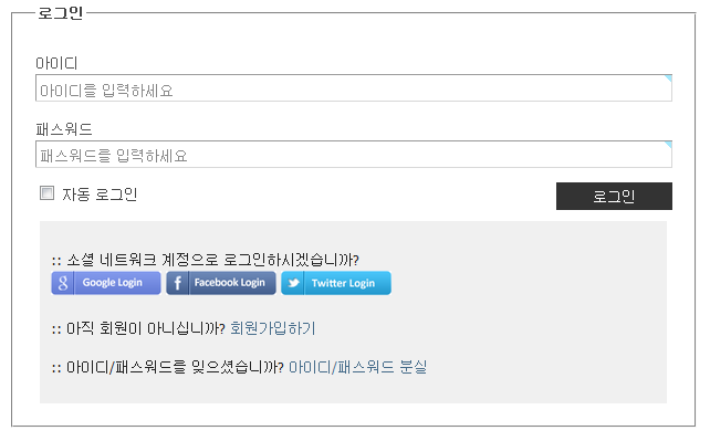 소셜 네트워크 계정(구글, 페이스북, 트위터)으로 그누보드에 로그인하는 플러그인입니다.