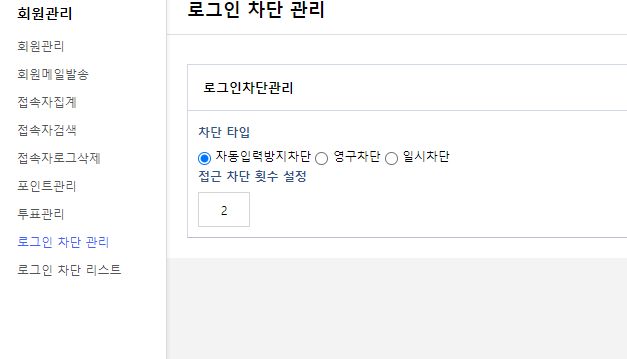 로그인 차단 관리 페이지가 추가 되었습니다.