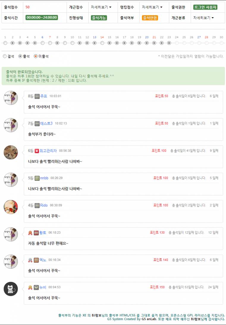 - 하루 출석 IP 체크 추가 ( setting.php 파일에서 하루 최대 IP 출석 횟수 제한 가능 )