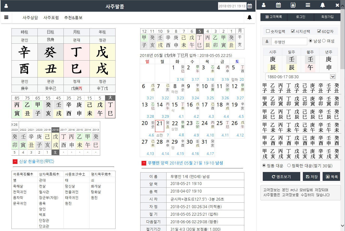 정밀 천체력을 이용한 만세력 사이트입니다.