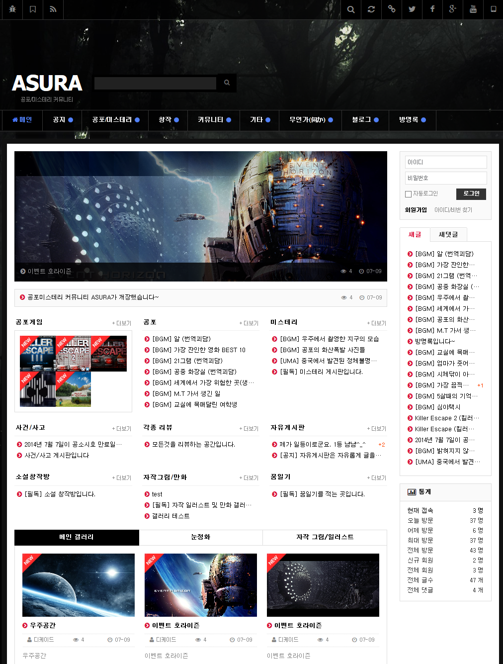 홈페이지 이름은 ASURA - 공포/미스테리 커뮤니티입니다