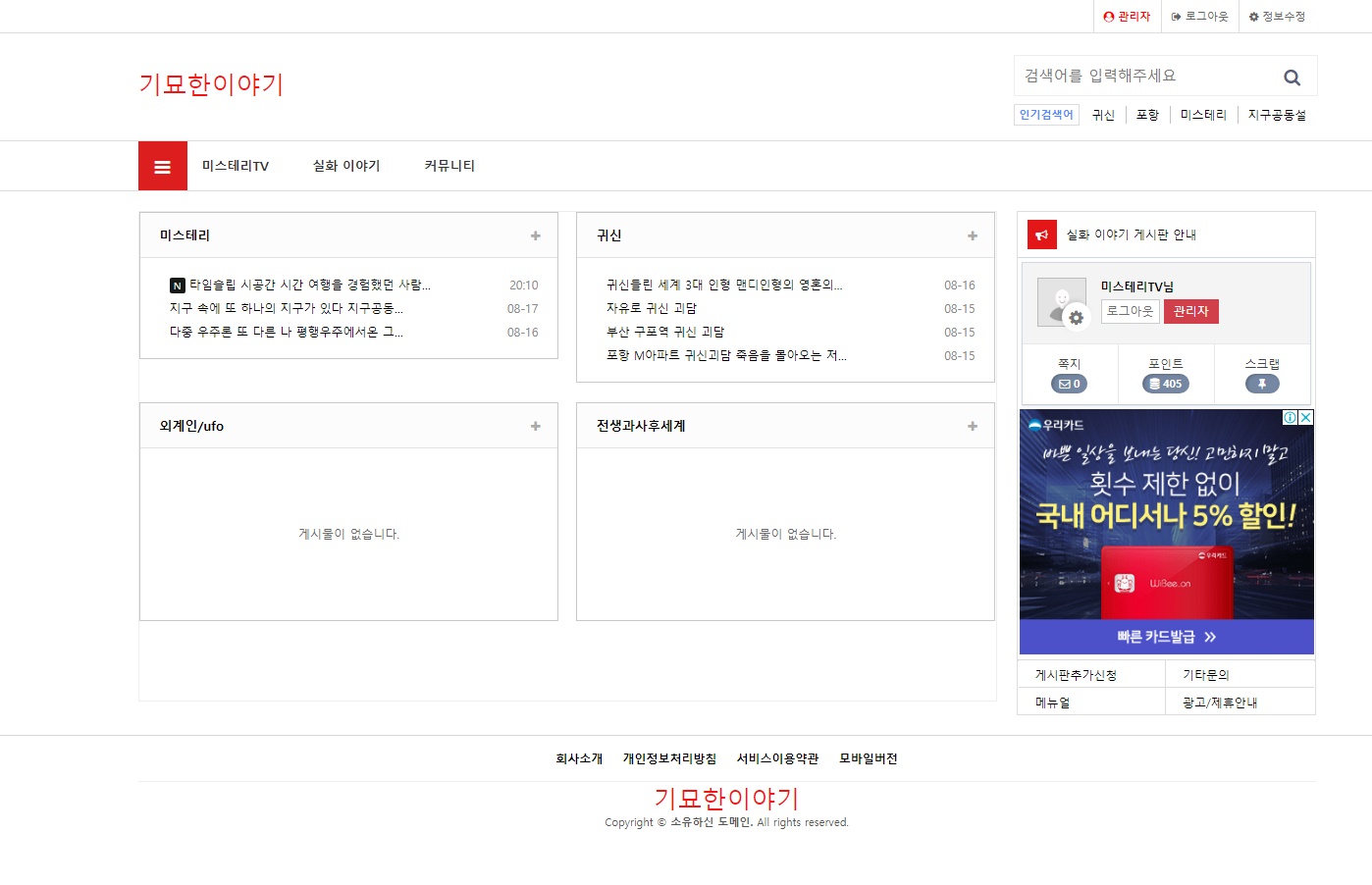 공포,귀신,미스테리,외계인 ufo등을 다루는 커뮤니티 입니다
