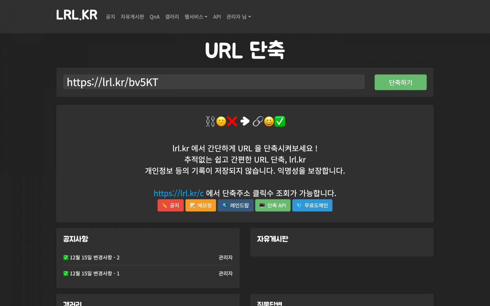 따로 운영하기는 좀 그래서 아예 url 단축 사이트를 그누보드 프론트 페이지에 접목시켜보았습니다.