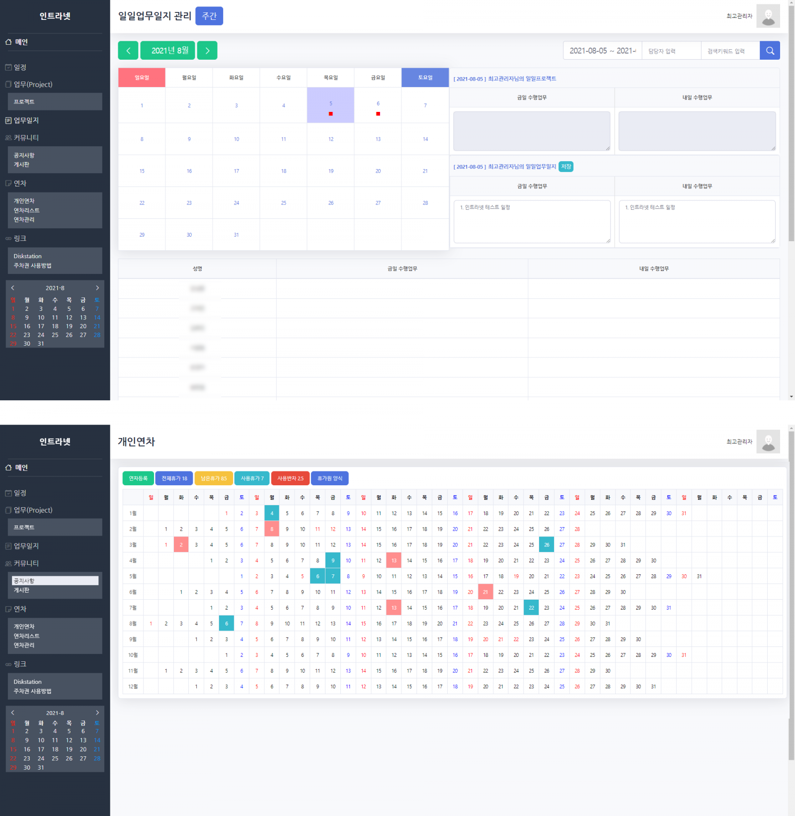 - 개인연차/연차리스트(전체확인), 연차관리(권한있는자만)