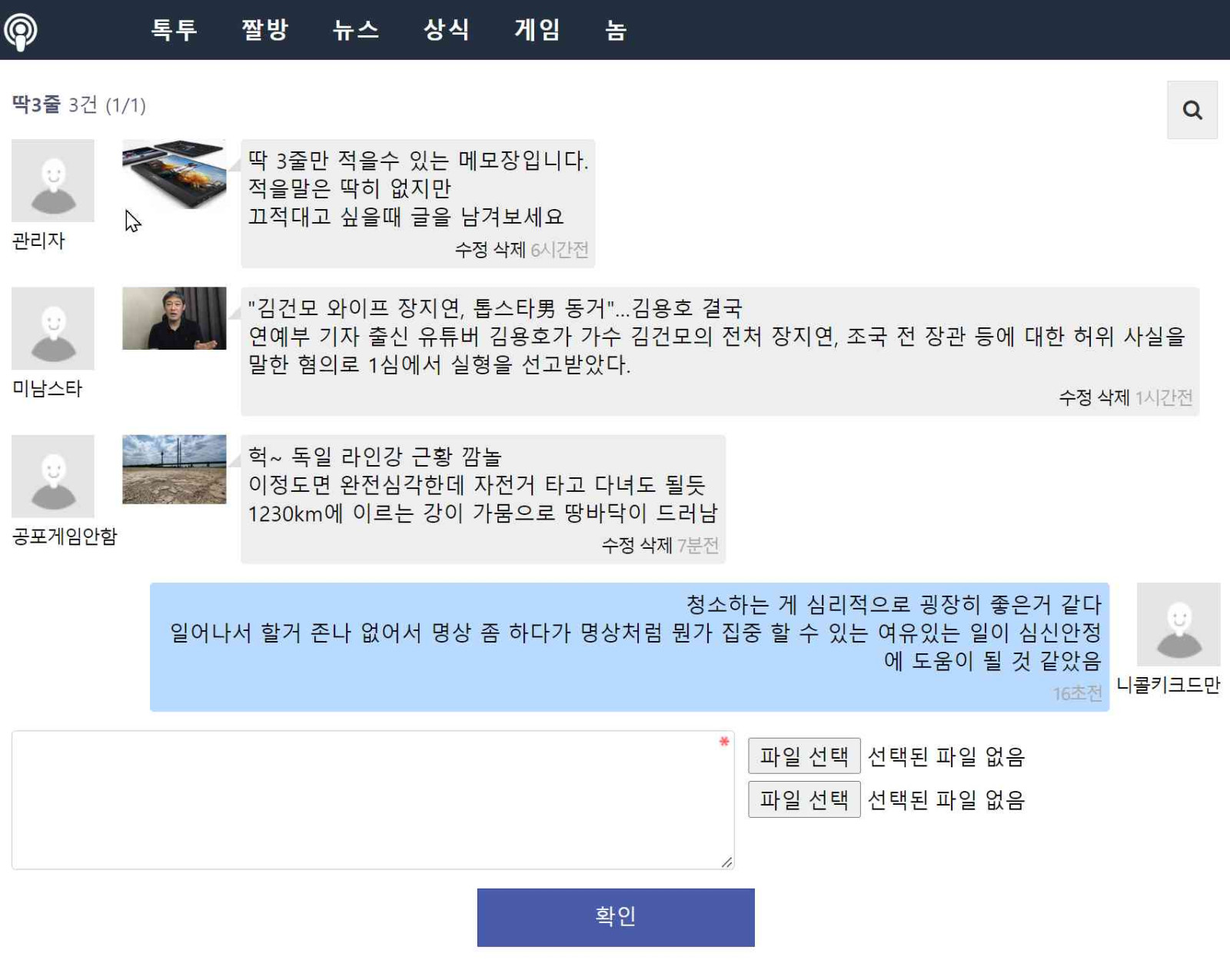 1초간격으로 새글이 보여지니 단체 채팅창 대용으로도 가능할듯합니다.
