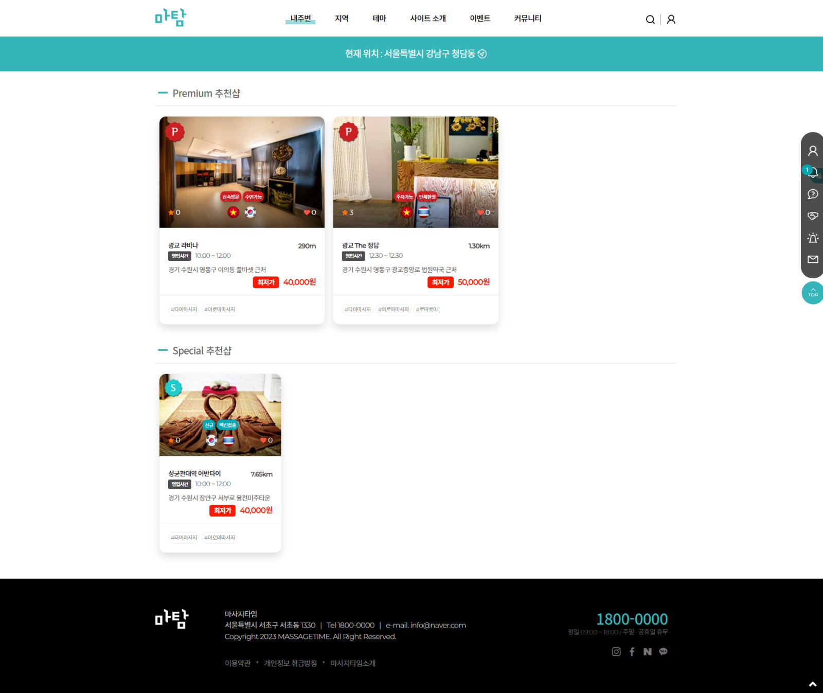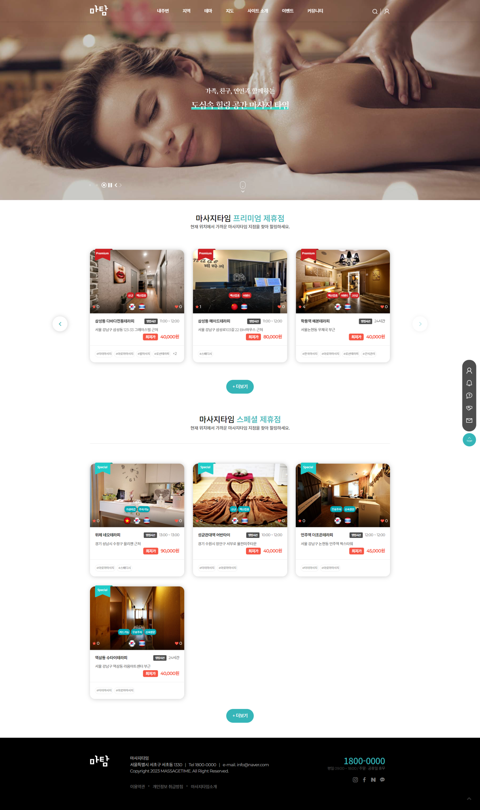 입점기반 마사지 사이트입니다. 반응형이므로 PC, 모바일지원됩니다. 감사합니다.