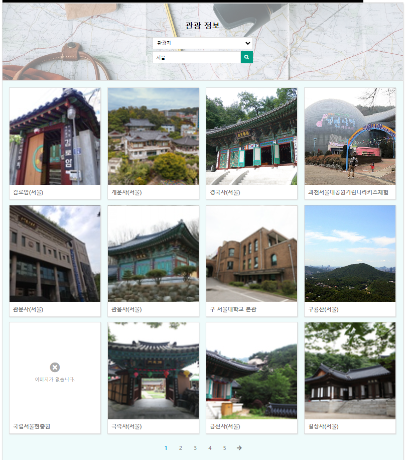 API를 활용해서 간단한 관광정보 반응형 사이트를 만들어 보았습니다.