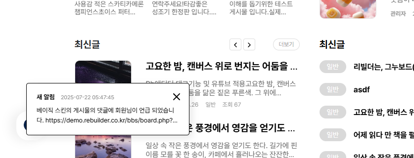 회원을 선택하고 글등록 또는 댓글 등록을 하는 경우 선택된 회원에게 알림을 보낼 수 있습니다.