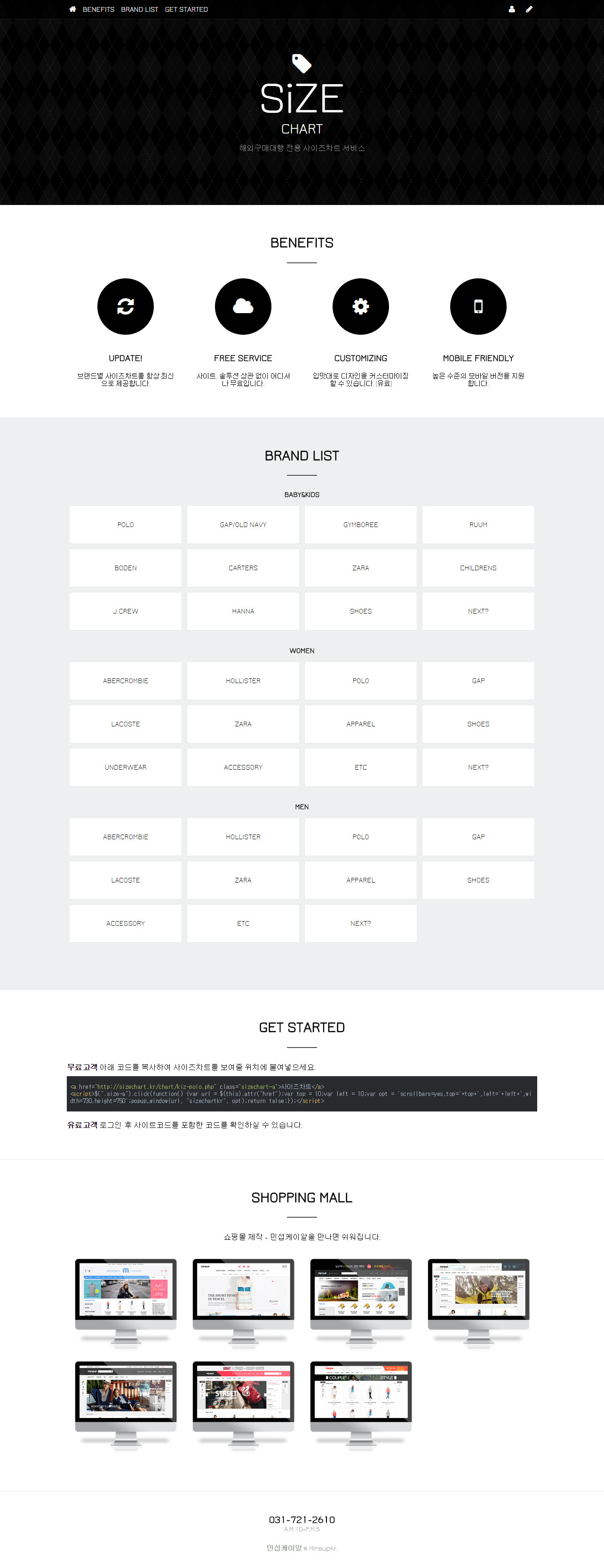 누구나 무료로 최신브랜드가 적용된 사이즈차트를 자신의 홈페이지에 적용하실 수 있으며 (광고 포함),