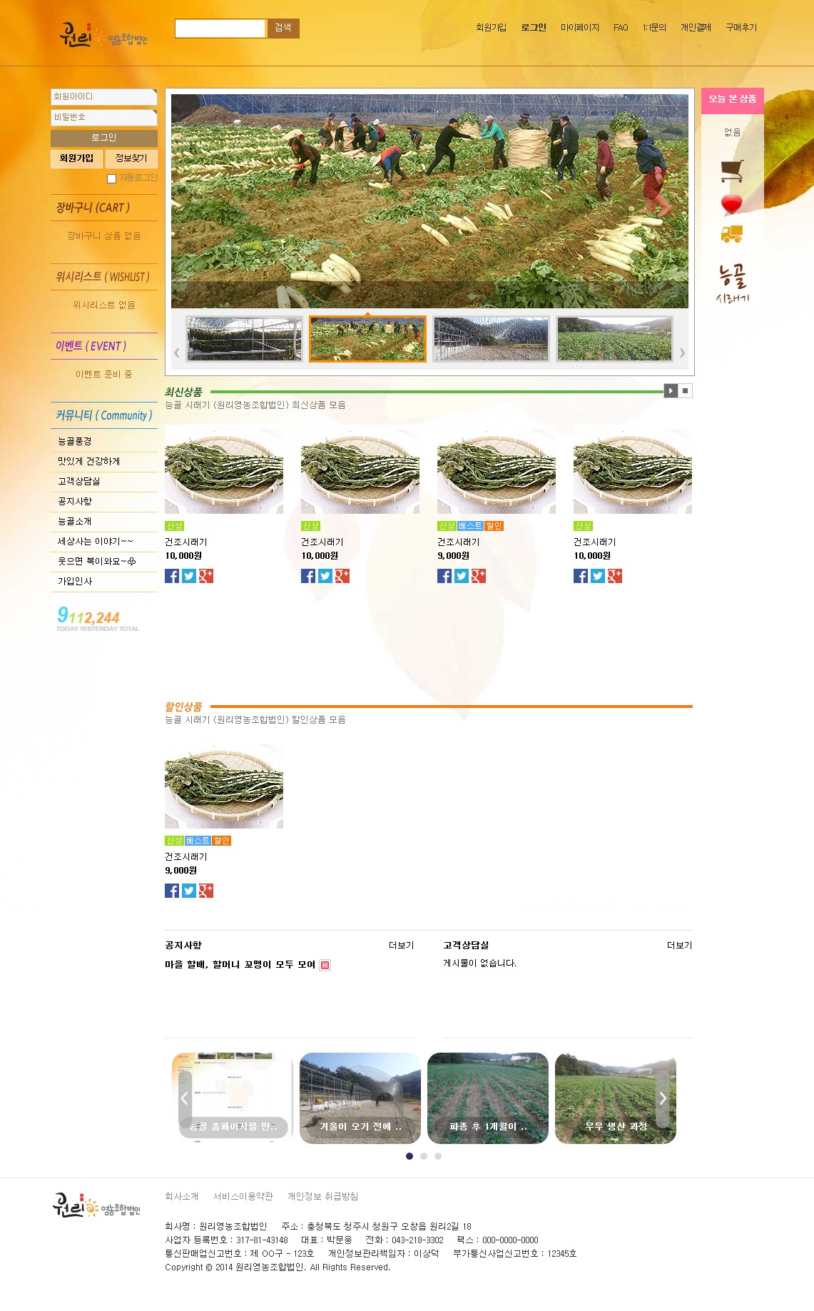 영카트5로 만든 쇼핑몰 능골 (원리영농협동조합)